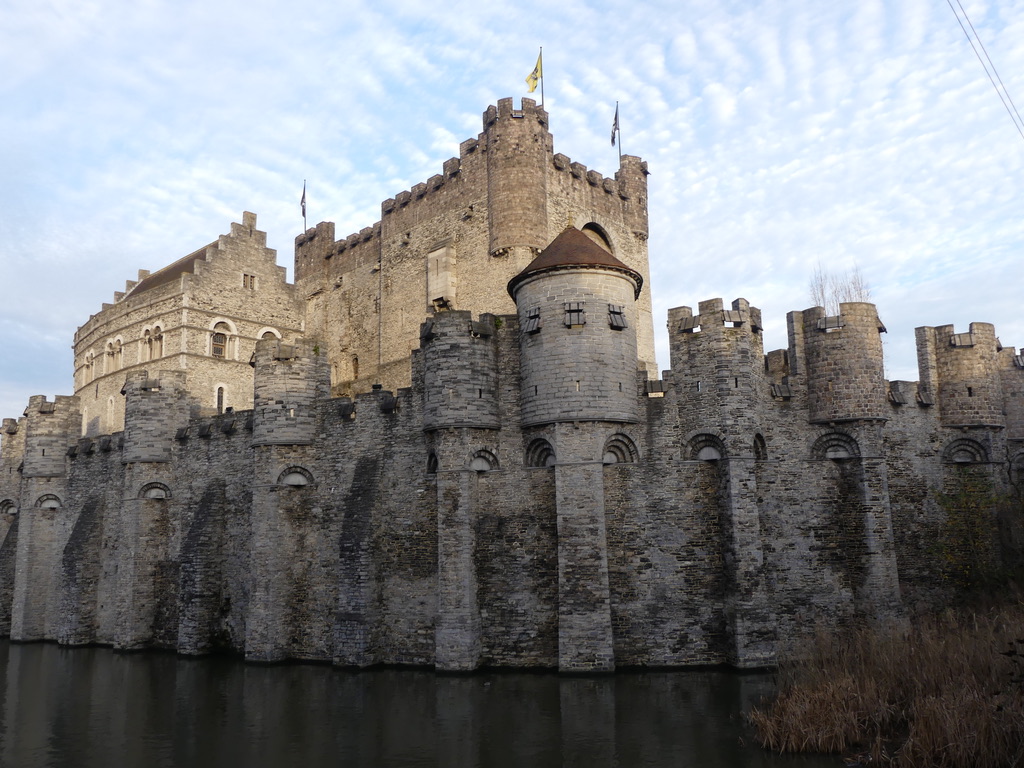 Avec des conditions idéales, mais bien tristes pour un premier janvier – 10 degrés et un beau ciel bleu – nous avons entrepris de visiter Gand, depuis Lille où nous séjournions pendant 4 jours. Nous nous sommes concentrés sur le centre-ville, qui regorge de sites emblématiques, mais nous avons aussi pris le temps de nous éloigner du tumulte central pour découvrir des petites ruelles où il a l’air de faire plutôt bon vivre. Le centre-ville, dont le tracé et l’aspect remontent tout droit à l’époque médiévale, est principalement piéton. A quelques exceptions près, on ne croise que quelques bus et des tramways. Le charme opère dès les premiers instants, et ce même avant d’arriver le long de la Lys, qui, avec ses canaux, offrent des images d’Épinal de cette cité flamande. Les rues pavées, les ponts qui enjambent le fleuve, les façades colorées et les toits à pas de moineaux si typiques du Nord, offrent un réel dépaysement. Même si c’est une ville où il fait bon se balader sans itinéraire précis, voici tout de même certains incontournables à ne pas manquer à Gand.