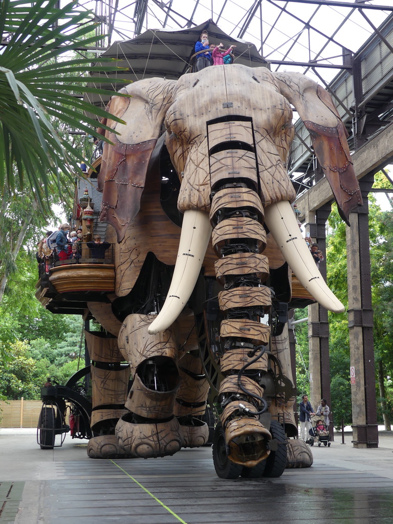 - Un éléphant géant, fait de bois et d’acier. Mesurant 12 mètres de haut pour un poids de près de 50 tonnes, 50 visiteurs peuvent y embarquer pour une promenade ;